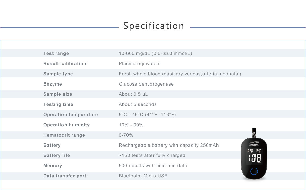 | Test range | 10-600 mg/dL (0.6-33.3 mmol/L) |
