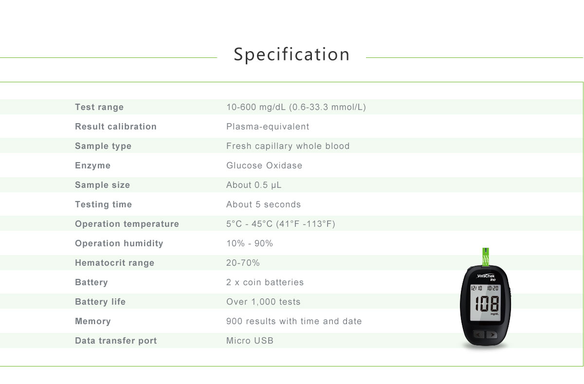 | Test range | 10-600 mg/dL (0.6-33.3 mmol/L) |