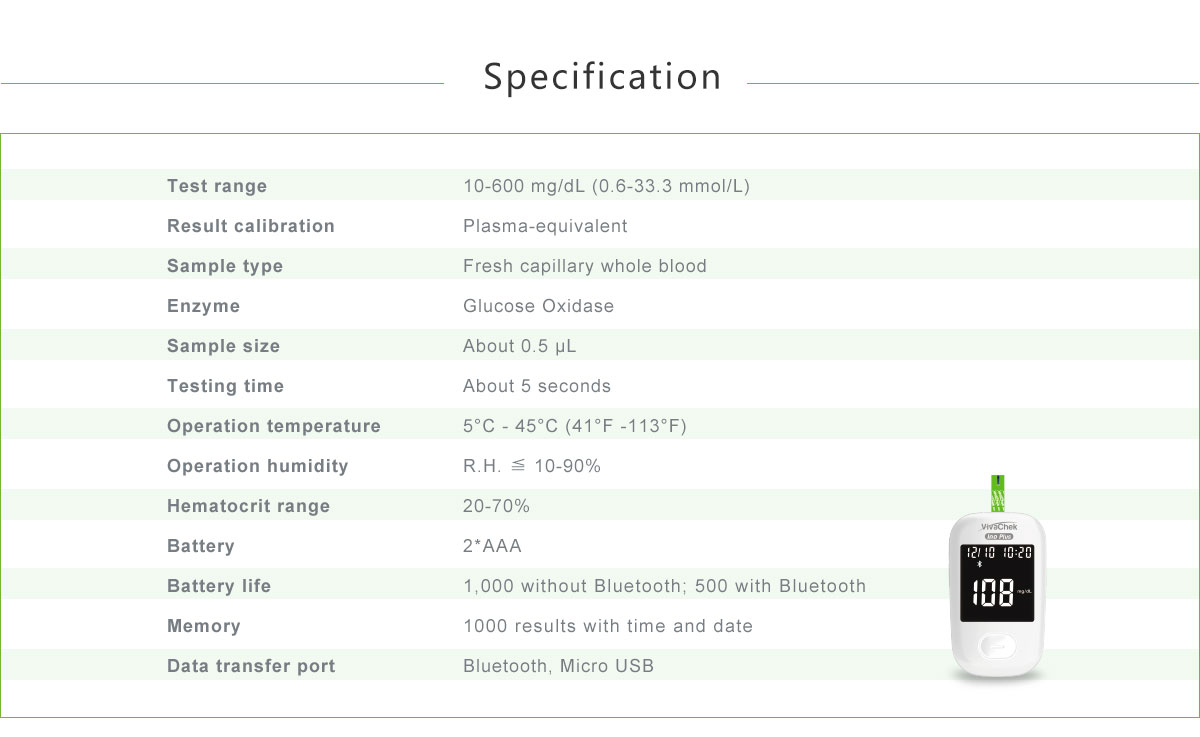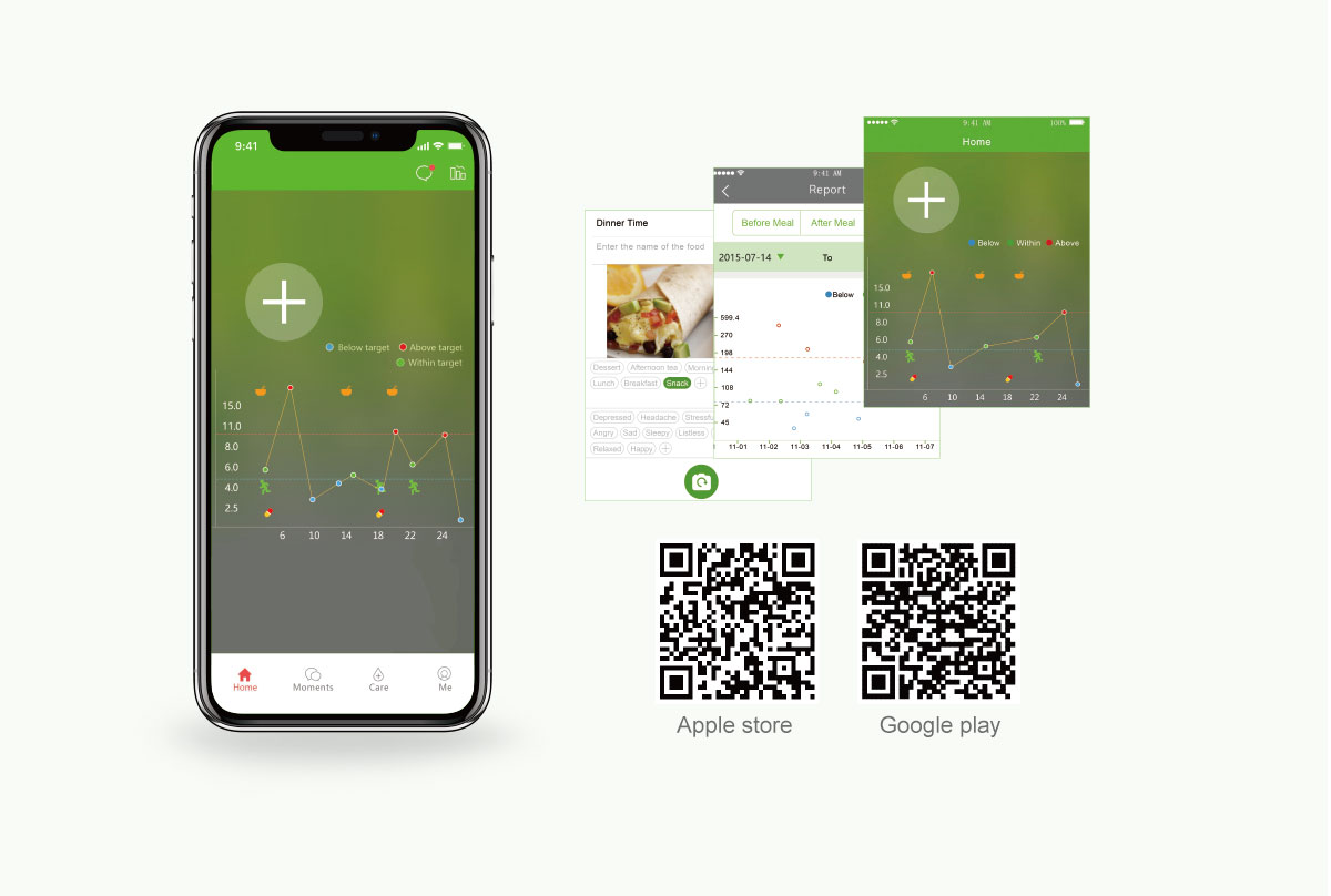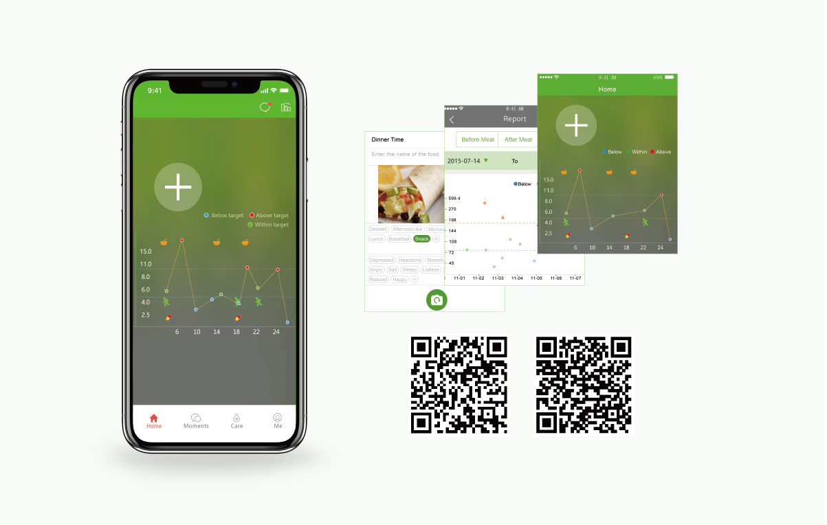 Our VivaGuard™ Diabetes Management APP shows diet, medication, sports and blood glucose changes in one chart, which makes it very convenient for users to manage blood glucose monitoring on a smart phone.