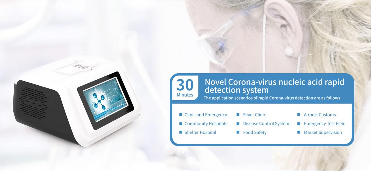 This product applies "real time quantitative PCR technology" in combination with independently developed "real-time dynamic precise temperature control technology", which can be used in various fluorescent quantitative PCR detection projects to achieve rapid nucleic acid detection. with strong functions and flexible operation,the PCR amplification test of DNA and RNA could be completed in a compact and portable mode.The reverse antipollution design with special design can effectively avoid the pollution caused by the accidental bounce of the hot cover.The simplified experimental operation process combining with the efficient rapid PCR reagent provide a perfect solution for Corona-virus detection project.
