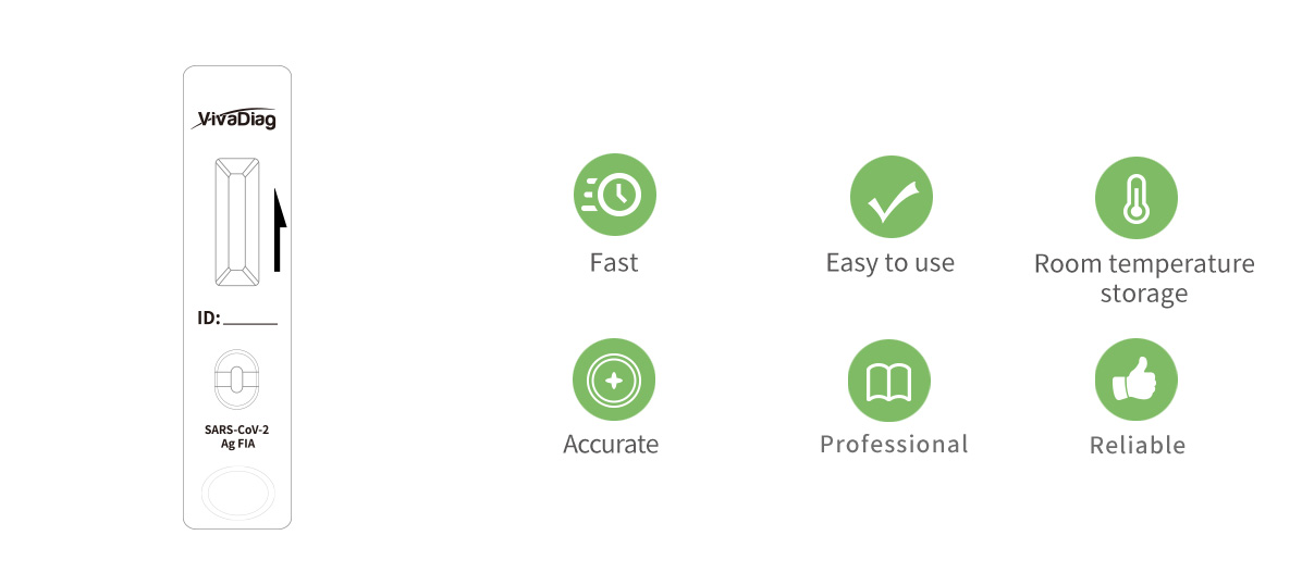 VivaDiag™ SARS-CoV-2 Ag FIA Test has ONLY been designed to act as a supplementary test for suspected cases of negative coronavirus nucleic acid detection or in conjunction with nucleic acid detection in the diagnosis of suspected cases. Results from nucleocapsid protein antigen testing should not be used as the sole basis to diagnose or exclude SARS-CoV-2 (COVID-19) infection or to inform infection status.