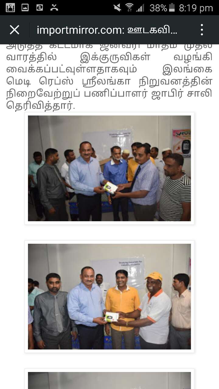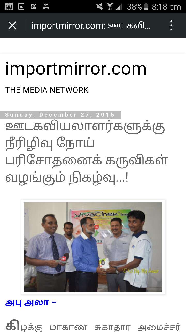 VivaChek®Ino Blood Glucose Monitoring System is the first 8 electrodes Blood Glucose Monitoring System launched in SriLanka, it has been promoted heavily on SriLanka’s leading tamil and news blog. Please check http://www.importmirror.com/?m=0 and http://www.importmirror.com/2015/12/blog-post_689.html?m=1 for more details.