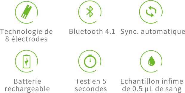 | Volume d'échantillon de sang | Environ 0.5 μL |